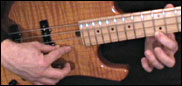 Example #2. It is very easy to produce harmonic which is one octave above just about any fretted note. A simple, user friendly example would be to play a G on the twelfth fret of the G string with the first finger of your left hand. Now take your right hand thumb and just barely touch the G string about 8 3/4" higher up (at the spot where the 24th fret would be if you had a two octave neck). With the first finger of your right hand, firmly play the G string just behind your thumb. The resulting, harmonic you now hear is a G, which sounds one octave higher than the note you are fingering with your left hand. This harmonic can also be produced by reversing the thumb and first finger of your right hand, so that your first finger is placed over the harmonic point, while the thumb plucks the string. Either method works just fine. Experiment with this technique on other strings and other notes. Just remember to play the harmonic point exactly one octave higher than the note you play with your left hand.